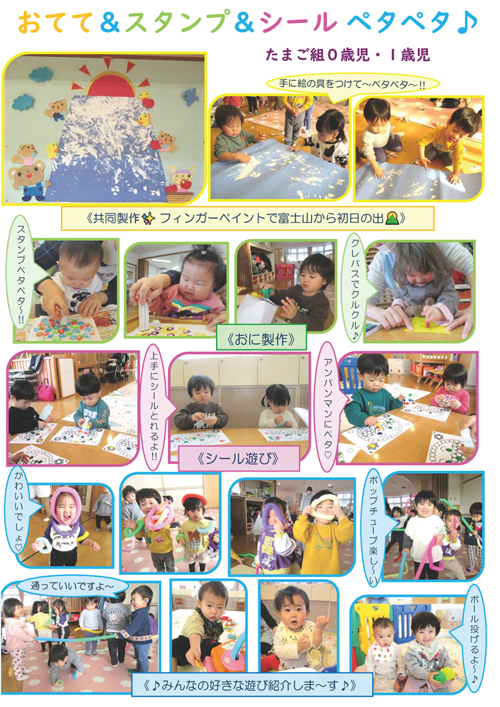 いよいよ冬本番!寒さが厳しくなる時期になりました。エンジェルたちにとっても、“ひんやりとした空気”“吐く息の白さ”“雪の降る様子”を見ながら、『様々な自然の不思議』を目にするチャンスでもあります。スマイルガーデンで、ママ達もご一緒に肌で感じながら、明るく楽しく過ごして参りましょう。皆様の参加を、心よりお待ちしております。